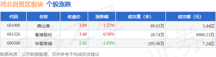 证券之星消息,12月12日河北自贸区板块较上一交易日上涨0.61%,唐山港领涨。当日上证指数报收于3889.35,上涨0.41%。深证成指报收于13258.33,上涨0.84%。河北自贸区板块个股涨跌见下表: