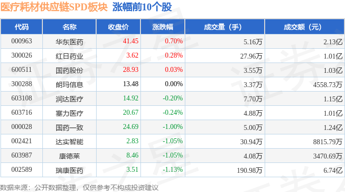 从资金流向上来看,当日医疗耗材供应链SPD板块主力资金净流出3.07亿元,游资资金净流入1.02亿元,散户资金净流入2.05亿元。医疗耗材供应链SPD板块个股资金流向见下表: