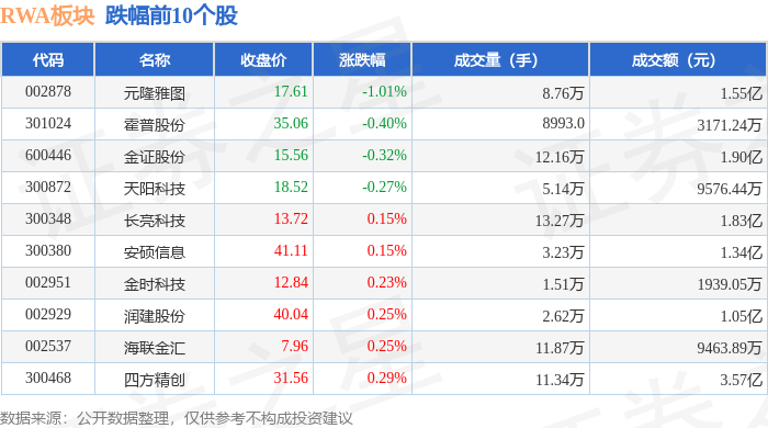 从资金流向上来看,当日RWA板块主力资金净流入8331.89万元,游资资金净流出6506.54万元,散户资金净流出1825.35万元。RWA板块个股资金流向见下表: