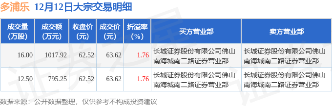 证券之星消息,12月12日多浦乐发生大宗交易,交易数据如下:
