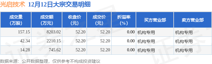 证券之星消息,12月12日光启技术发生大宗交易,交易数据如下: