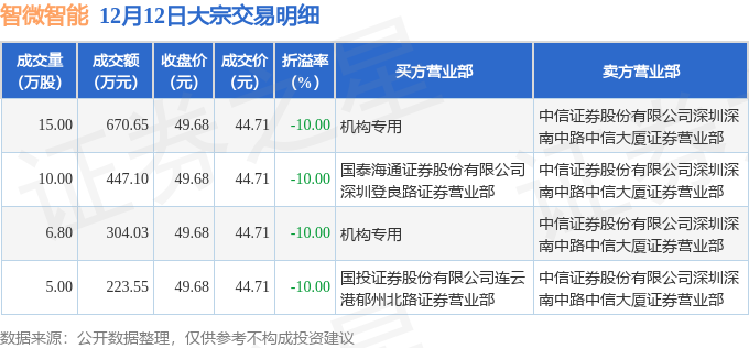 证券之星消息,12月12日智微智能发生大宗交易,交易数据如下: