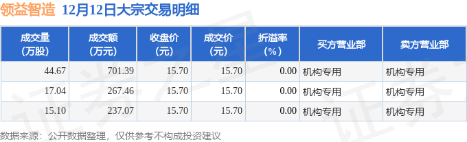 证券之星消息,12月12日领益智造发生大宗交易,交易数据如下: