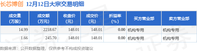 证券之星消息,12月12日长芯博创发生大宗交易,交易数据如下: