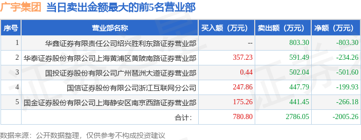 证券之星消息,沪深交易所2025年12月12日公布的交易公开信息显示,广宇集团(002133)因日跌幅偏离值达到7%的前5只证券登上龙虎榜。此次是近5个交易日内第1次上榜。