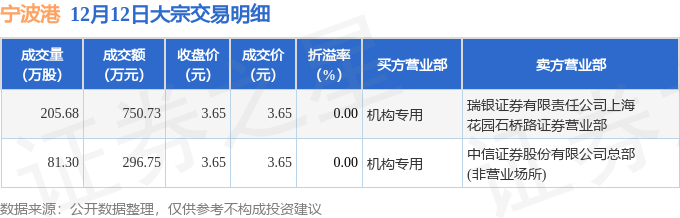 证券之星消息,12月12日宁波港发生大宗交易,交易数据如下: