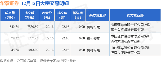 证券之星消息,12月12日XD华泰证发生大宗交易,交易数据如下: