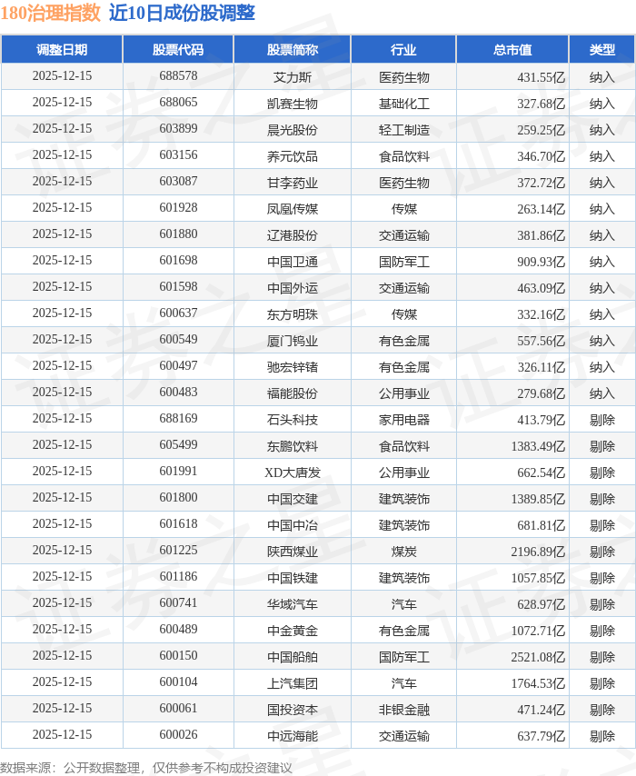 近10日内180治理(000021)指数成份股做了调整,新纳入了13只股票,剔除了13只股票。