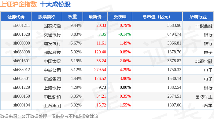 证券之星消息,12月12日,上证沪企(000062)指数报收于2064.52点,涨1.14%,成交524.01亿元,换手率0.89%。当日该指数成份股中,上涨的有33家,盛美上海以7.98%的涨幅领涨,下跌的有15家,上海机场以3.09%的跌幅领跌。