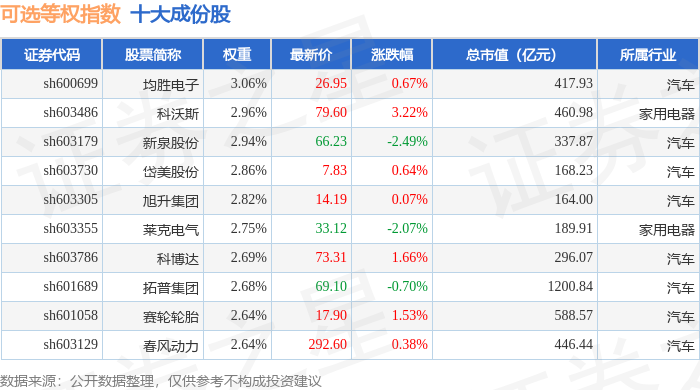 可选等权(000073)指数十大成份股详情如下: