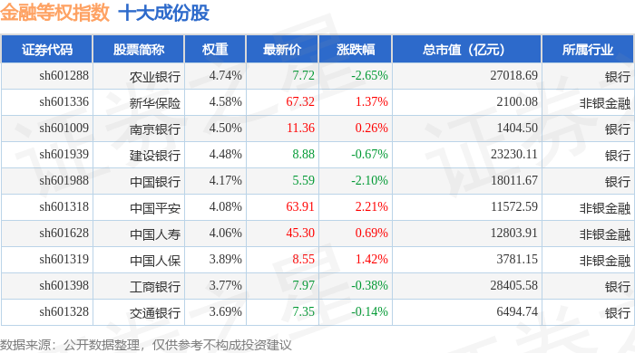 金融等权(000076)指数十大成份股详情如下: