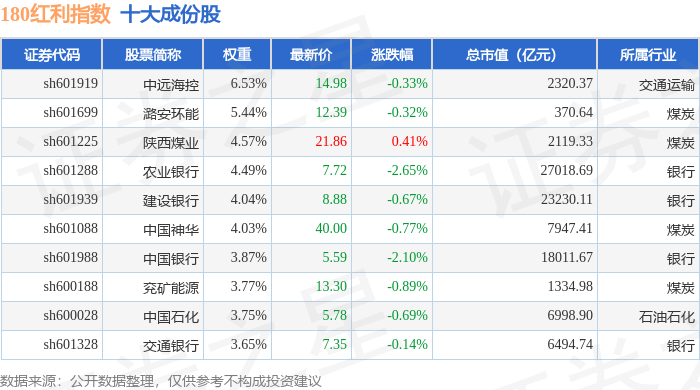 180红利(000149)指数十大成份股详情如下: