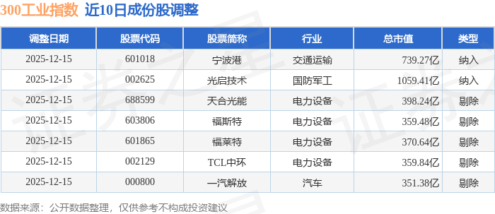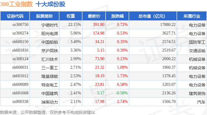 300工业(000910)指数十大成份股详情如下: