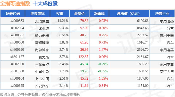 全指可选(000989)指数十大成份股详情如下: