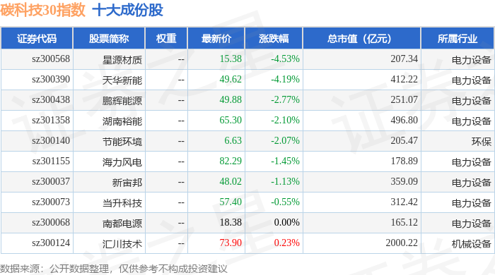 近10日内碳科技30(399030)指数成份股做了调整,新纳入了2只股票,剔除了2只股票。