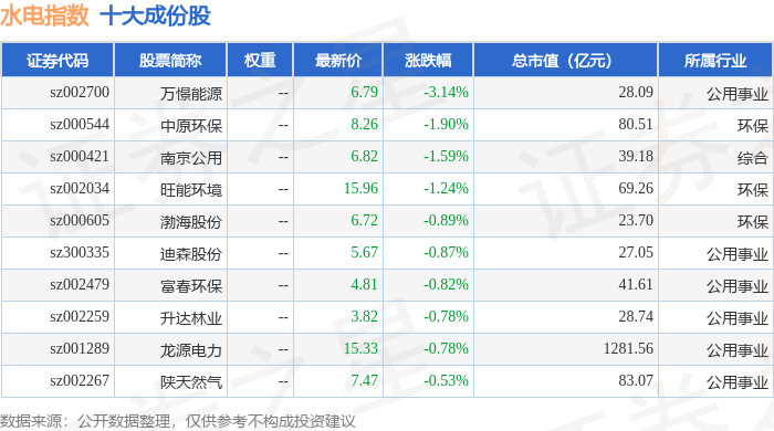 资金流向方面,水电指数(399234)成份股当日主力资金净流入合计2.72亿元,游资资金净流出合计8111.78万元,散户资金净流出合计1.91亿元。成份股资金流向详情见下表: