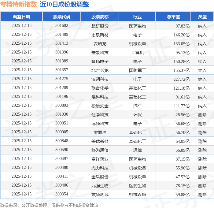 近10日内专精特新(399267)指数成份股做了调整,新纳入了10只股票,剔除了10只股票。