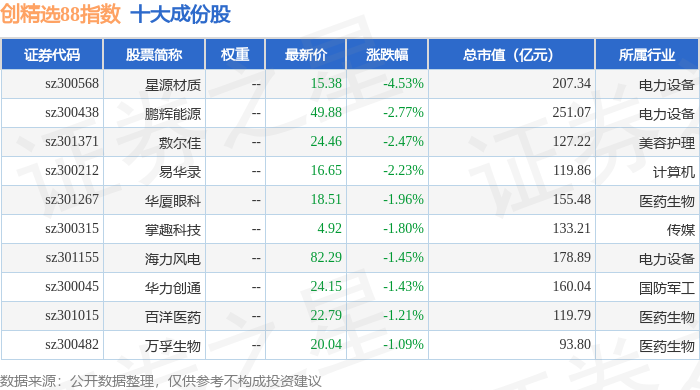 近10日内创精选88(399291)指数成份股做了调整,新纳入了24只股票。