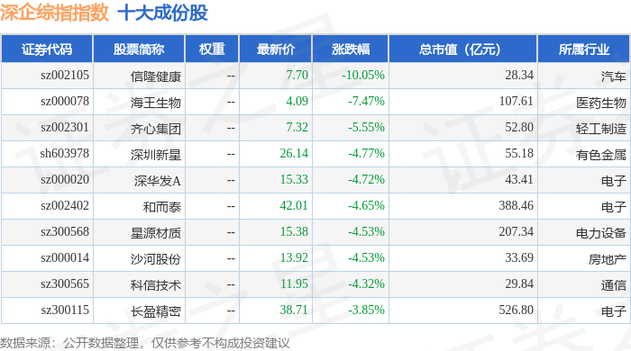 深企综指(399352)指数十大成份股详情如下: