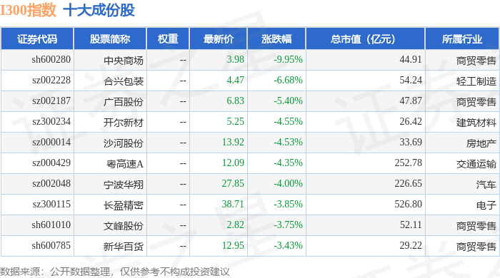 I300(399416)指数十大成份股详情如下: