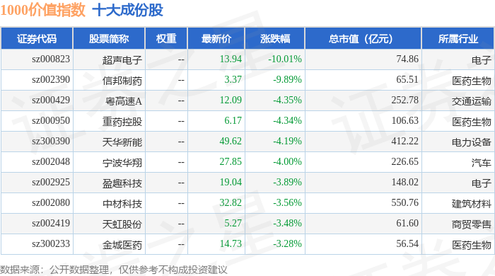1000价值(399631)指数十大成份股详情如下: