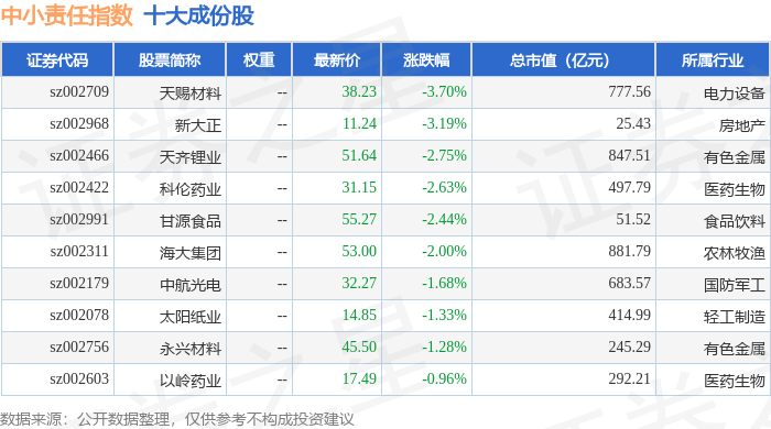 中小责任(399651)指数十大成份股详情如下: