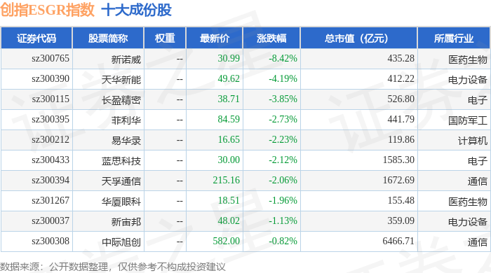 创指ESGR(470028)指数十大成份股详情如下: