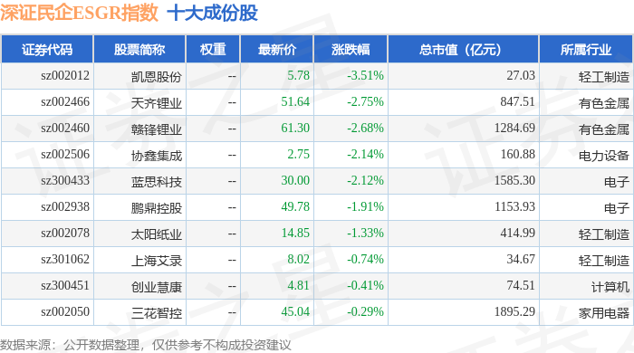 深证民企ESGR(470056)指数十大成份股详情如下: