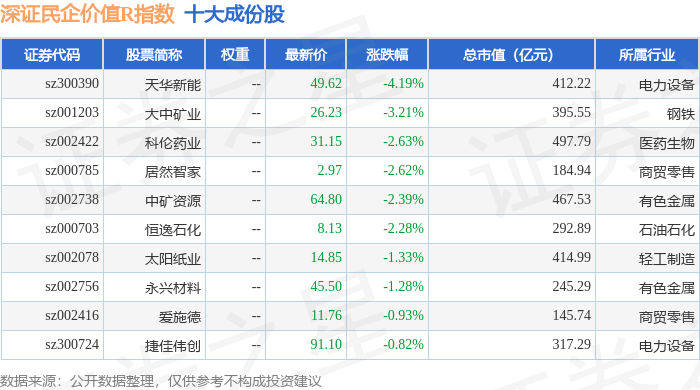 资金流向方面,深证民企价值R(470072)指数成份股当日主力资金净流入合计9.31亿元,游资资金净流出合计13.0亿元,散户资金净流入合计3.69亿元。成份股资金流向详情见下表:
