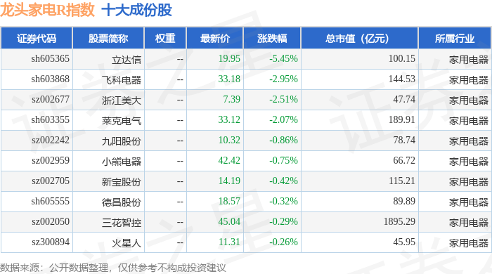 近10日内龙头家电R(480028)指数成份股做了调整,新纳入了3只股票。