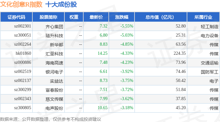 文化创意R(480046)指数十大成份股详情如下:
