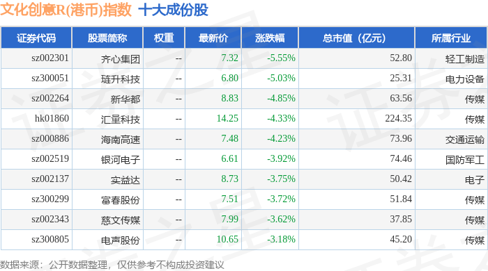 文化创意R(港币)(480047)指数十大成份股详情如下: