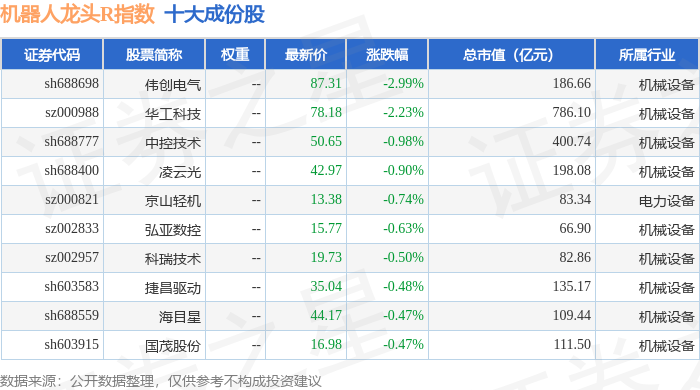 机器人龙头R(480071)指数十大成份股详情如下: