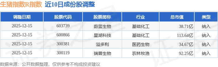 近10日内生猪指数R(480073)指数成份股做了调整,新纳入了4只股票。