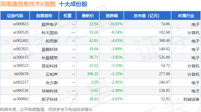 深港通信息技术R(483027)指数十大成份股详情如下: