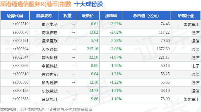 深港通通信服务R(港币)(483034)指数十大成份股详情如下: