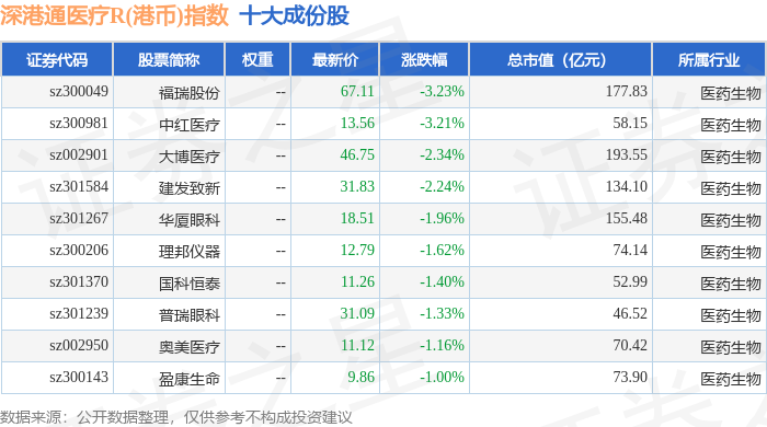 深港通医疗R(港币)(483036)指数十大成份股详情如下: