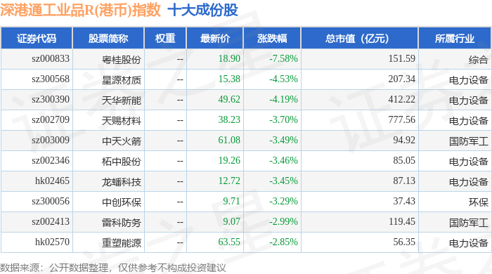 深港通工业品R(港币)(483070)指数十大成份股详情如下: