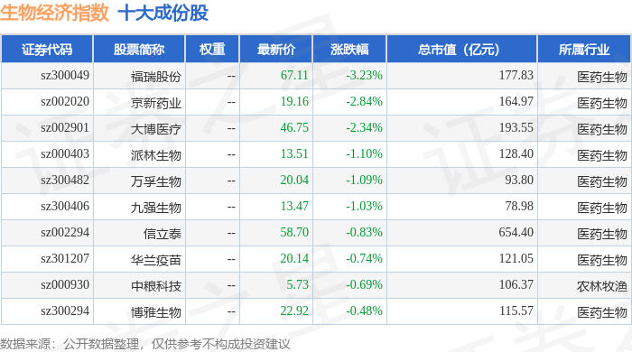 生物经济(970038)指数十大成份股详情如下: