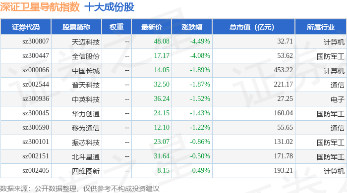 深证卫星导航(970050)指数十大成份股详情如下: