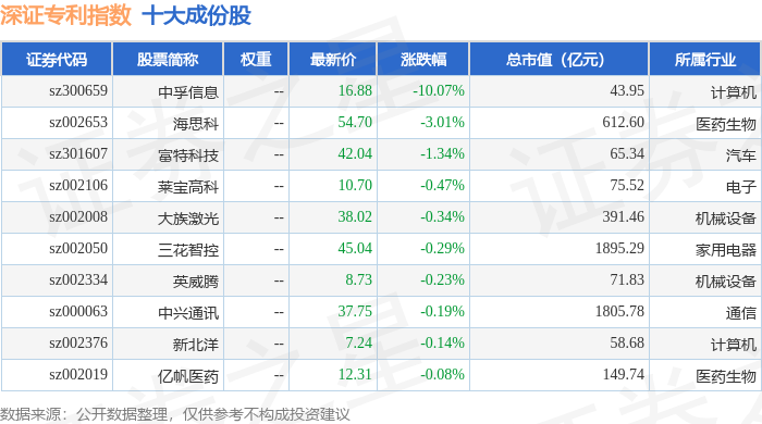 近10日内深证专利(970067)指数成份股做了调整,新纳入了5只股票,剔除了5只股票。