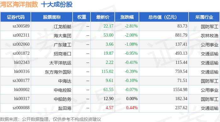 近10日内湾区海洋(980019)指数成份股做了调整,新纳入了2只股票。