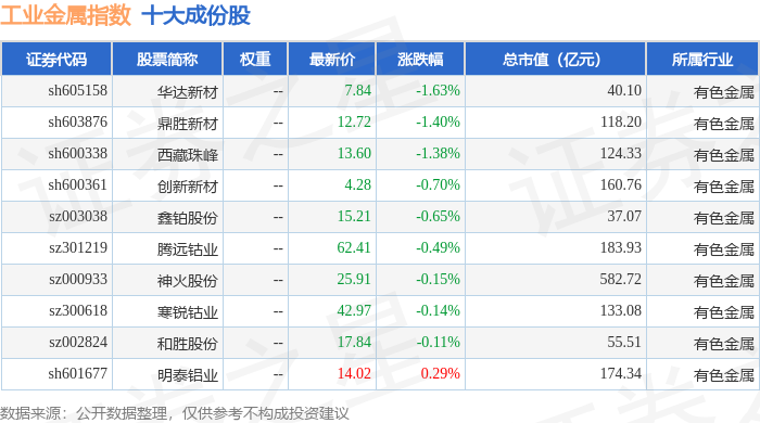 近10日内工业金属(980043)指数成份股做了调整,新纳入了2只股票,剔除了1只股票。