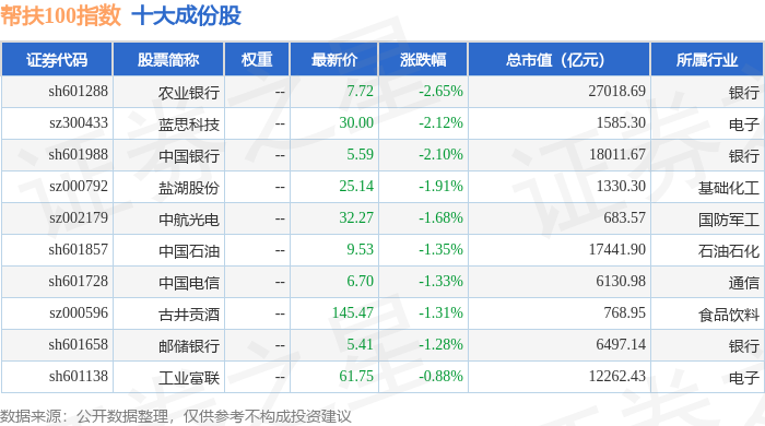 近10日内帮扶100(980065)指数成份股做了调整,新纳入了5只股票。