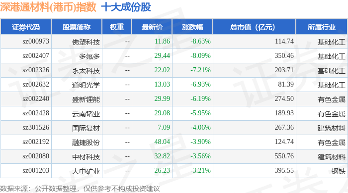 深港通材料(港币)(983016)指数十大成份股详情如下: