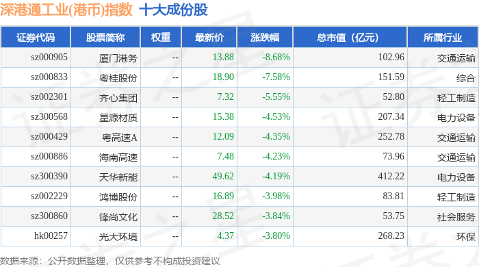 深港通工业(港币)(983018)指数十大成份股详情如下: