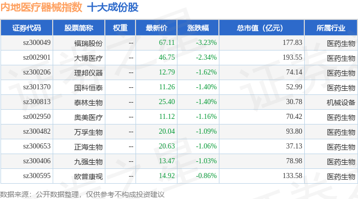 近10日内内地医疗器械(983103)指数成份股做了调整,新纳入了1只股票。