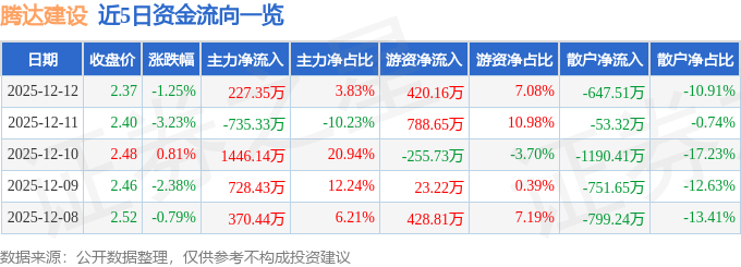 12月12日的资金流向数据方面,主力资金净流入227.35万元,占总成交额3.83%,游资资金净流入420.16万元,占总成交额7.08%,散户资金净流出647.51万元,占总成交额10.91%。