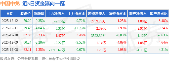 证券之星消息,截至2025年12月12日收盘,中国中免(601888)报收于79.2元,下跌0.35%,换手率1.44%,成交量28.03万手,成交额22.15亿元。