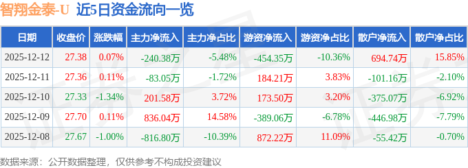 12月12日的资金流向数据方面,主力资金净流出240.38万元,占总成交额5.48%,游资资金净流出454.35万元,占总成交额10.36%,散户资金净流入694.74万元,占总成交额15.85%。